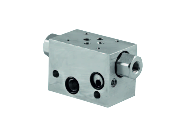Block för montage av NG6 cetop ventiler med sidoportar och inbyggda pilotstyrda backventiler på A porten